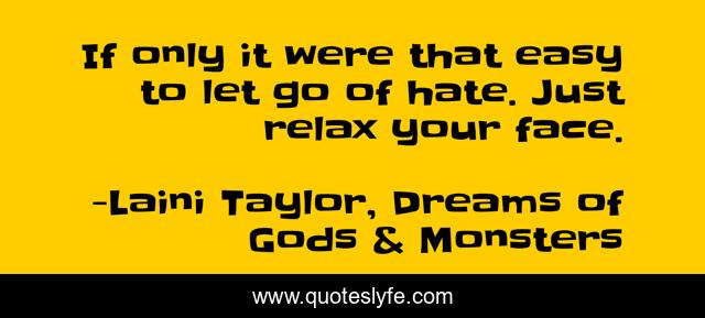 This page presents the quote "If only it were that easy to let go of hate. Just relax your face.". Author of this quote is Laini Taylor, Dreams of Gods & Monsters. This quote is about face, hate, relax,.