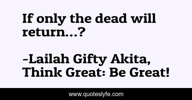 "Lailah Gifty Akita, Think Great: Be Great! Quotes." Quoteslyfe.com, 2025. Fri. 05 Dec. 2025. <https://www.quoteslyfe.com/quote/If-only-the-dead-will-return-140409>.