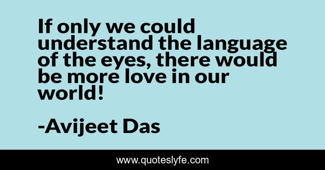 This page presents the quote "If only we could understand the language of the eyes, there would be more love in our world!". Author of this quote is Avijeet Das. This quote is about peace, love, better-world, affection, lanuguage-of-eyes,.