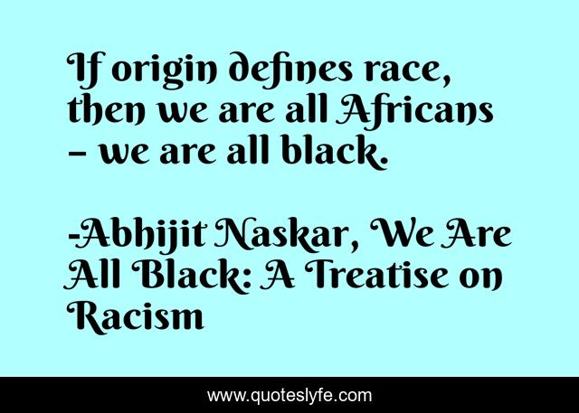 "Abhijit Naskar, We Are All Black: A Treatise on Racism Quotes." Quoteslyfe.com, 2025. Fri. 05 Dec. 2025. <https://www.quoteslyfe.com/quote/If-origin-defines-race-then-we-are-178171>.