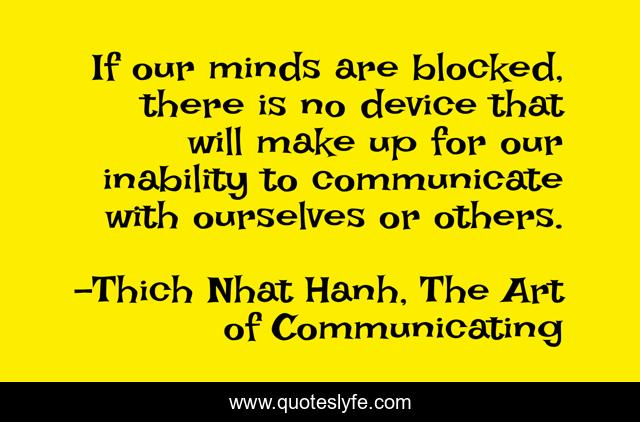 This page presents the quote "If our minds are blocked, there is no device that will make up for our inability to communicate with ourselves or others.". Author of this quote is Thich Nhat Hanh, The Art of Communicating. .