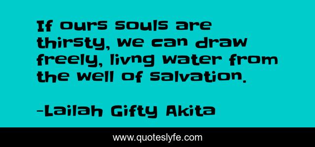 This page presents the quote "If ours souls are thirsty, we can draw freely, livng water from the well of salvation.". Author of this quote is Lailah Gifty Akita. This quote is about water, christian, repentance, salvation,.