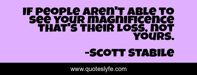 This page presents the quote "If people aren't able to see your magnificence that's their loss, not yours.". Author of this quote is Scott Stabile. This quote is about inspirationa, happiness, love, truth, affection,.
