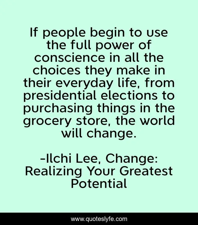 If people begin to use the full power of conscience in all the choices they make in their everyday life, from presidential elections to purchasing things in the grocery store, the world will change.