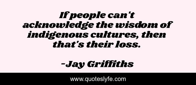 This page presents the quote "If people can't acknowledge the wisdom of indigenous cultures, then that's their loss.". Author of this quote is Jay Griffiths. This quote is about loss, people, cultures,.