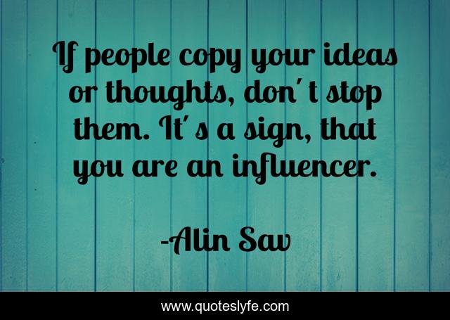 This page presents the quote "If people copy your ideas or thoughts, don´t stop them. It´s a sign, that you are an influencer.". Author of this quote is Alin Sav. .