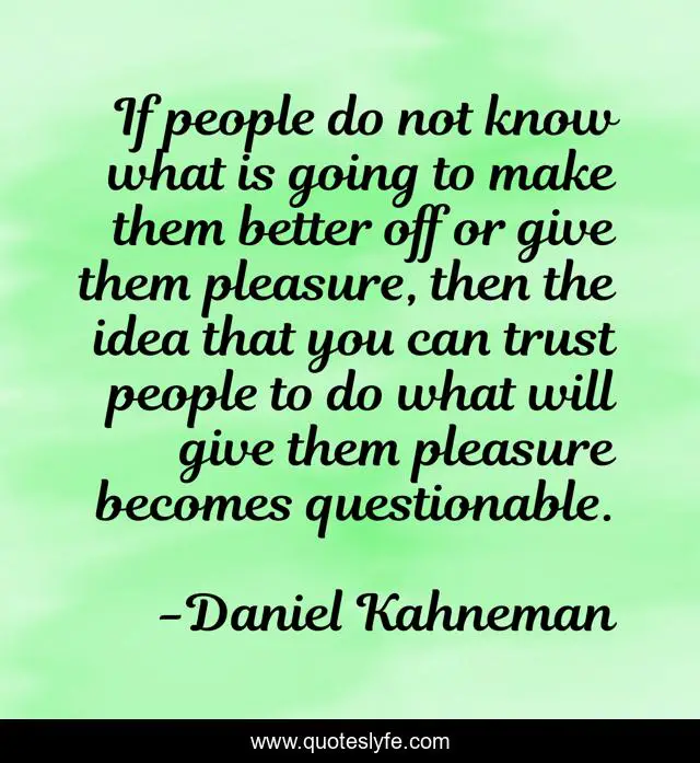 This page presents the quote "If people do not know what is going to make them better off or give them pleasure, then the idea that you can trust people to do what will give them pleasure becomes questionable.". Author of this quote is Daniel Kahneman. This quote is about better, people,.