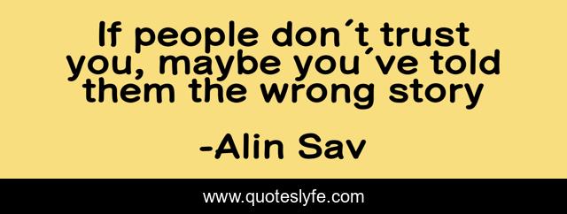 This page presents the quote "If people don´t trust you, maybe you´ve told them the wrong story". Author of this quote is Alin Sav. .