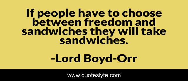 This page presents the quote "If people have to choose between freedom and sandwiches they will take sandwiches.". Author of this quote is Lord Boyd-Orr. .