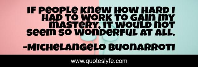 This page presents the quote "If people knew how hard I had to work to gain my mastery, it would not seem so wonderful at all.". Author of this quote is Michelangelo Buonarroti. This quote is about mastery, wonderful, work, hard-work,.