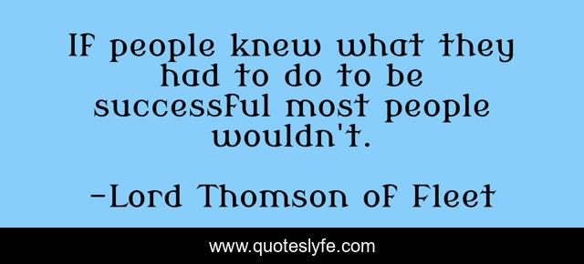 This page presents the quote "If people knew what they had to do to be successful most people wouldn't.". Author of this quote is Lord Thomson of Fleet. .