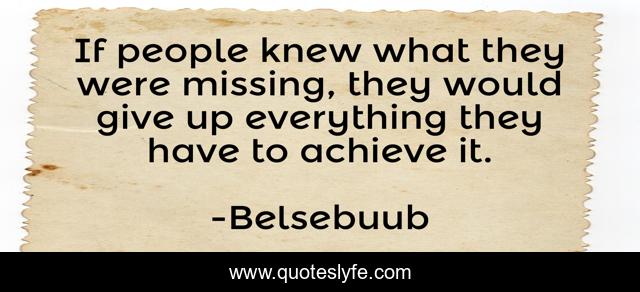 This page presents the quote "If people knew what they were missing, they would give up everything they have to achieve it.". Author of this quote is Belsebuub. .