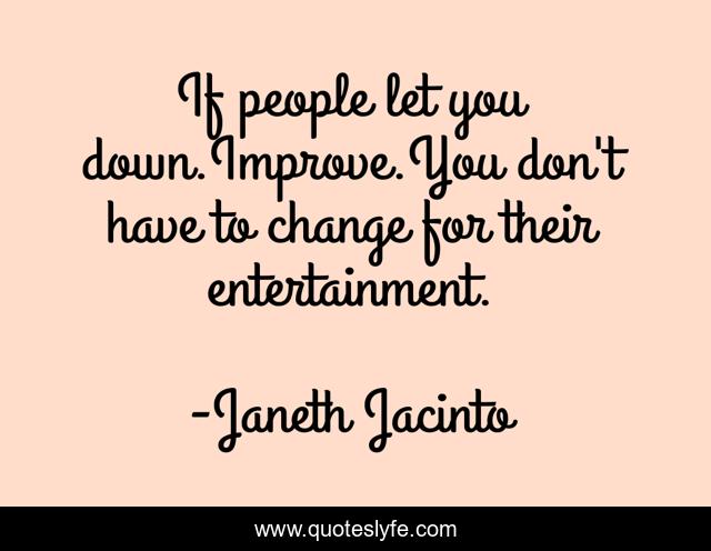 This page presents the quote "If people let you down.Improve.You don't have to change for their entertainment.". Author of this quote is Janeth Jacinto. .