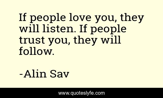 This page presents the quote "If people love you, they will listen. If people trust you, they will follow.". Author of this quote is Alin Sav. .