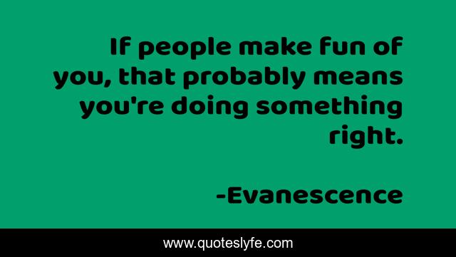 This page presents the quote "If people make fun of you, that probably means you're doing something right.". Author of this quote is Evanescence. This quote is about enthusiasm, life, inspirational, people,.