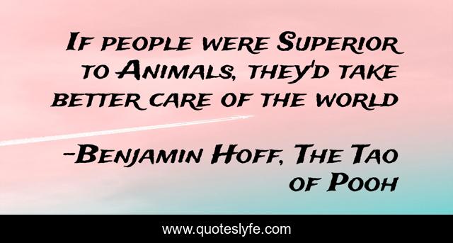 This page presents the quote "If people were Superior to Animals, they'd take better care of the world". Author of this quote is Benjamin Hoff, The Tao of Pooh. This quote is about inspirational-life, humor-inspirational, animal-rights,.