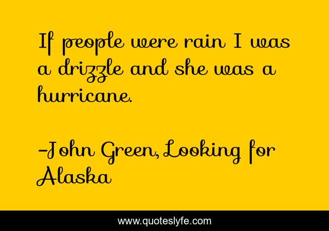 "John Green, Looking for Alaska Quotes." Quoteslyfe.com, 2025. Sun. 07 Dec. 2025. <https://www.quoteslyfe.com/quote/If-people-were-rain-I-was-a-221592>.