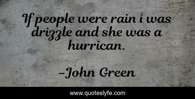 This page presents the quote "If people were rain i was drizzle and she was a hurrican.". Author of this quote is John Green. This quote is about cute, book, looking-for-alaska, sad,.