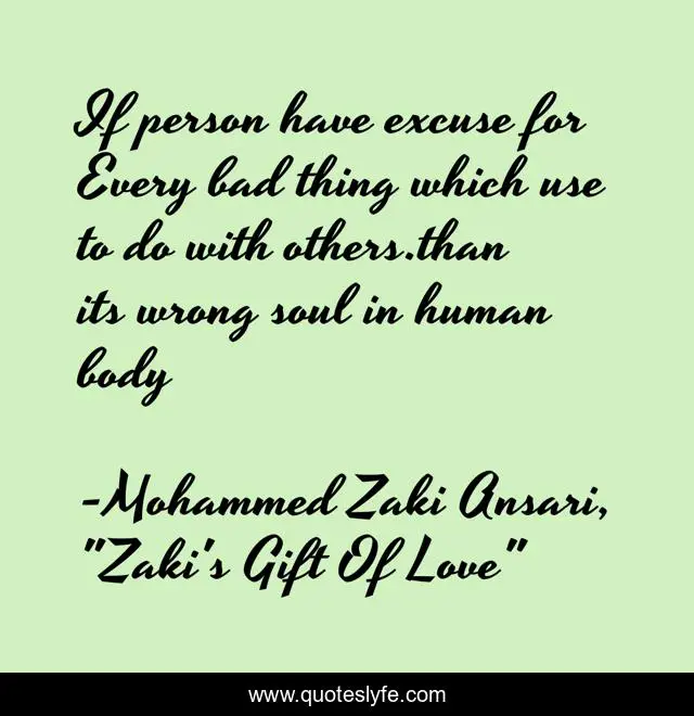 "Mohammed Zaki Ansari, "Zaki's Gift Of Love" Quotes." Quoteslyfe.com, 2025. Fri. 05 Dec. 2025. <https://www.quoteslyfe.com/quote/If-person-have-excuse-for-Every-bad-57673>.