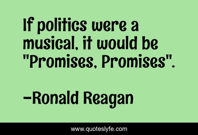 This page presents the quote "If politics were a musical, it would be "Promises, Promises".". Author of this quote is Ronald Reagan. This quote is about politics, humour,.