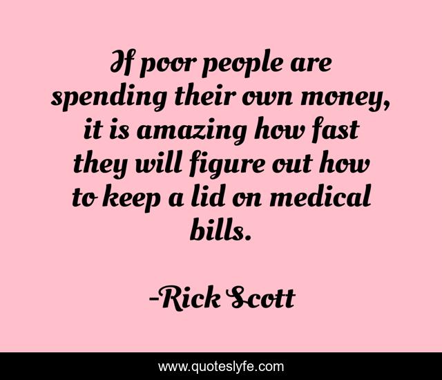 This page presents the quote "If poor people are spending their own money, it is amazing how fast they will figure out how to keep a lid on medical bills.". Author of this quote is Rick Scott. This quote is about money, medical, people,.