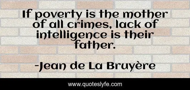 This page presents the quote "If poverty is the mother of all crimes, lack of intelligence is their father.". Author of this quote is Jean de La Bruyère. This quote is about intelligence, poverty, crime,.