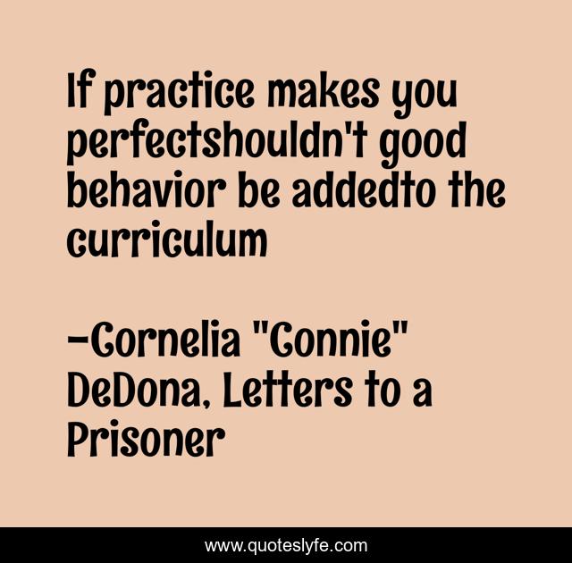 This page presents the quote "If practice makes you perfectshouldn't good behavior be addedto the curriculum". Author of this quote is Cornelia "Connie" DeDona, Letters to a Prisoner. .