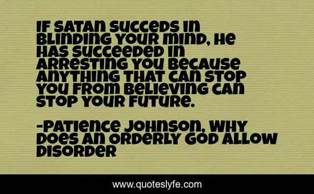"Patience Johnson, Why Does an Orderly God Allow Disorder Quotes." Quoteslyfe.com, 2025. Tue. 09 Dec. 2025. <https://www.quoteslyfe.com/quote/If-satan-succeds-in-blinding-your-mind-47888>.