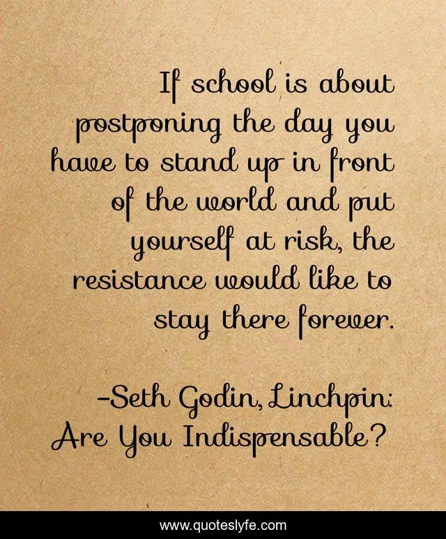 "Seth Godin, Linchpin: Are You Indispensable? Quotes." Quoteslyfe.com, 2025. Mon. 08 Dec. 2025. <https://www.quoteslyfe.com/quote/If-school-is-about-postponing-the-day-46003>.
