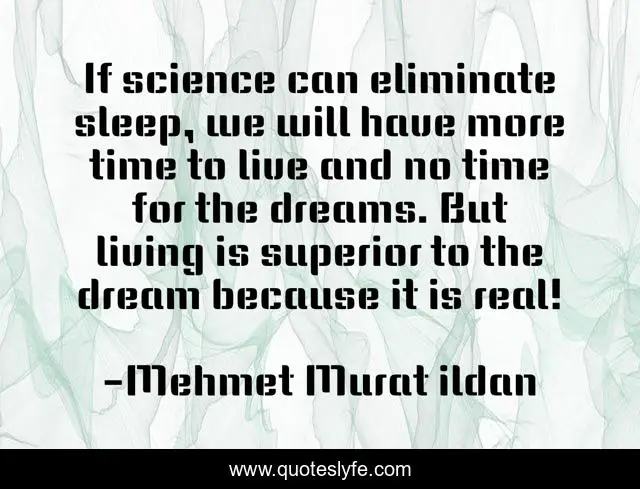 This page presents the quote "If science can eliminate sleep, we will have more time to live and no time for the dreams. But living is superior to the dream because it is real!". Author of this quote is Mehmet Murat ildan. .