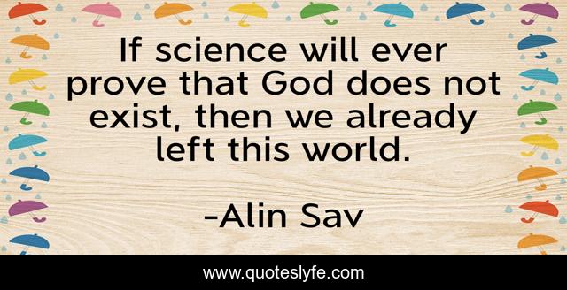 This page presents the quote "If science will ever prove that God does not exist, then we already left this world.". Author of this quote is Alin Sav. This quote is about spiritual, religion-and-philosophy,.