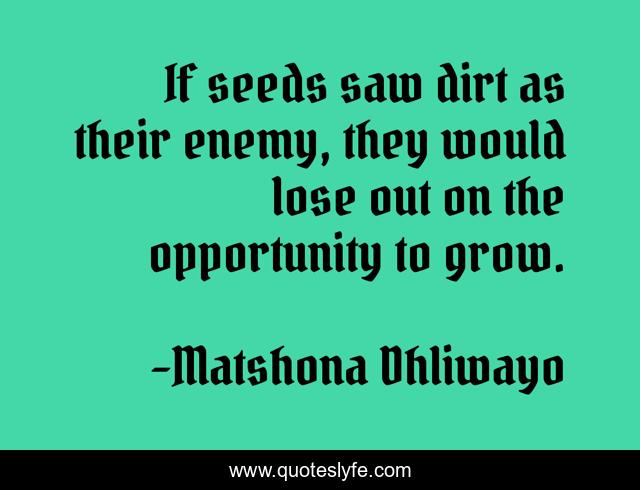 "Matshona Dhliwayo Quotes." Quoteslyfe.com, 2025. Sat. 06 Dec. 2025. <https://www.quoteslyfe.com/quote/If-seeds-saw-dirt-as-their-enemy-208097>.