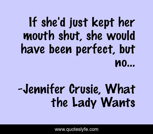 This page presents the quote "If she'd just kept her mouth shut, she would have been perfect, but no...". Author of this quote is Jennifer Crusie, What the Lady Wants. This quote is about perfect, woman, quiet, shut-up, mouth, silence,.