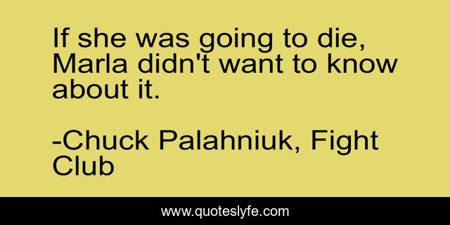 "Chuck Palahniuk, Fight Club Quotes." Quoteslyfe.com, 2025. Tue. 09 Dec. 2025. <https://www.quoteslyfe.com/quote/If-she-was-going-to-die-Marla-22019>.