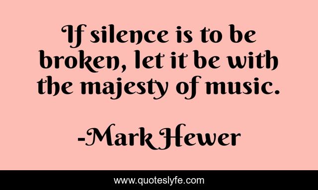 This page presents the quote "If silence is to be broken, let it be with the majesty of music.". Author of this quote is Mark Hewer. This quote is about mark-hewer, music, majesty, silence,.
