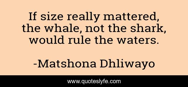 "Matshona Dhliwayo Quotes." Quoteslyfe.com, 2025. Sat. 06 Dec. 2025. <https://www.quoteslyfe.com/quote/If-size-really-mattered-the-whale-not-47513>.