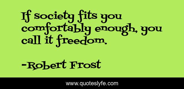 This page presents the quote "If society fits you comfortably enough, you call it freedom.". Author of this quote is Robert Frost. This quote is about freedom, enough,.
