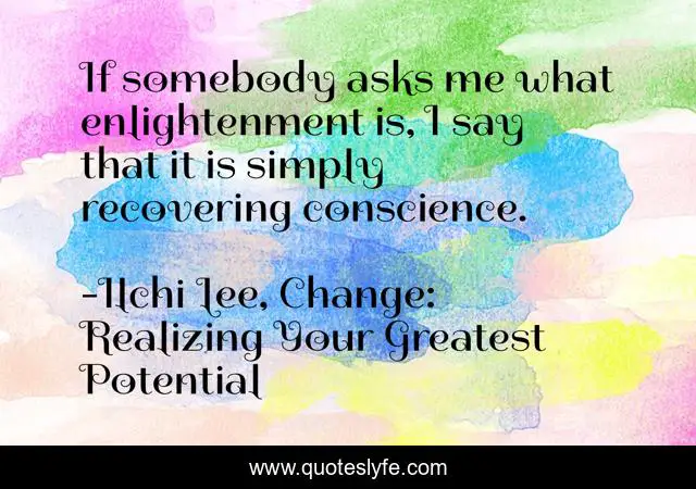 This page presents the quote "If somebody asks me what enlightenment is, I say that it is simply recovering conscience.". Author of this quote is Ilchi Lee, Change: Realizing Your Greatest Potential. This quote is about enthusiasm, inspirational, self-development,.