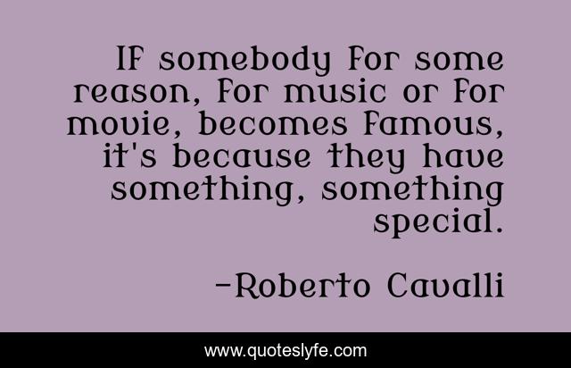 This page presents the quote "If somebody for some reason, for music or for movie, becomes famous, it's because they have something, something special.". Author of this quote is Roberto Cavalli. This quote is about reason, music, special,.