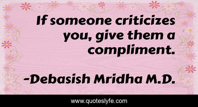 This page presents the quote "If someone criticizes you, give them a compliment.". Author of this quote is Debasish Mridha M.D.. This quote is about criticism, philosophy, debasish-mridha, quotes, inspirational, enthusiasm, debasish-mridha-m-d, compliment, how-to-react-to-criticism,.