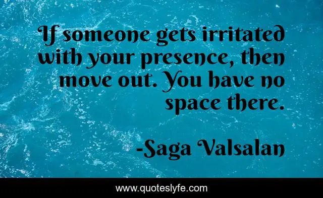 "Saga Valsalan Quotes." Quoteslyfe.com, 2025. Fri. 05 Dec. 2025. <https://www.quoteslyfe.com/quote/If-someone-gets-irritated-with-your-presence-191941>.