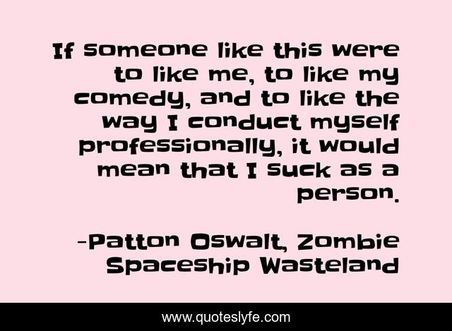 This page presents the quote "If someone like this were to like me, to like my comedy, and to like the way I conduct myself professionally, it would mean that I suck as a person.". Author of this quote is Patton Oswalt, Zombie Spaceship Wasteland. .