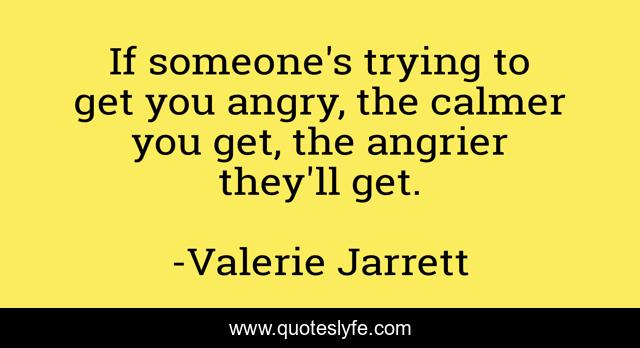 This page presents the quote "If someone's trying to get you angry, the calmer you get, the angrier they'll get.". Author of this quote is Valerie Jarrett. This quote is about girl-power, courage,.