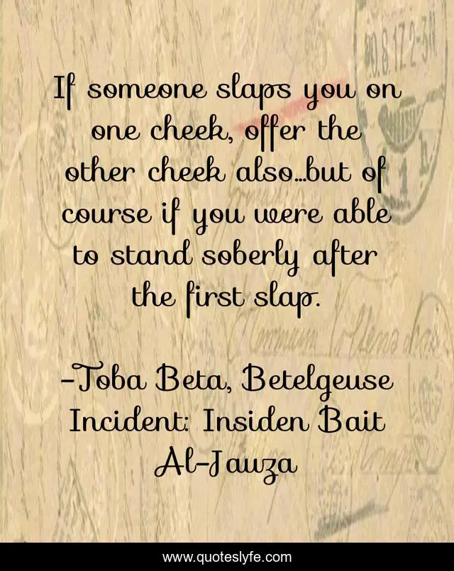"Toba Beta, Betelgeuse Incident: Insiden Bait Al-Jauza Quotes." Quoteslyfe.com, 2025. Fri. 05 Dec. 2025. <https://www.quoteslyfe.com/quote/If-someone-slaps-you-on-one-cheek-154080>.