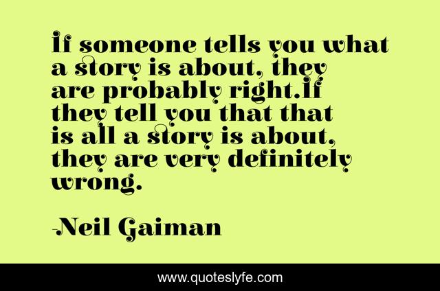 This page presents the quote "If someone tells you what a story is about, they are probably right.If they tell you that that is all a story is about, they are very definitely wrong.". Author of this quote is Neil Gaiman. This quote is about neil-gaiman, storytelling, fahrenheit-451-introduction,.