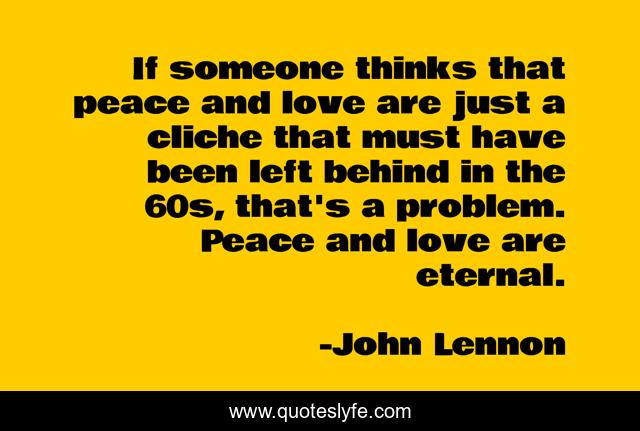 This page presents the quote "If someone thinks that peace and love are just a cliche that must have been left behind in the 60s, that's a problem. Peace and love are eternal.". Author of this quote is John Lennon. This quote is about beatles, love, peace, 1960s, sixties, affection,.