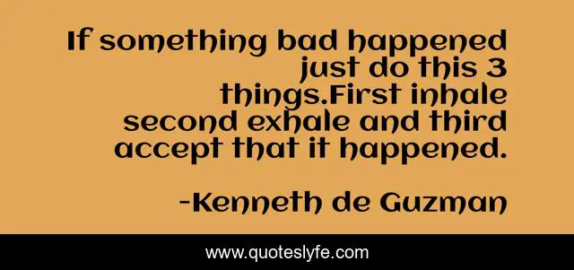 This page presents the quote "If something bad happened just do this 3 things.First inhale second exhale and third accept that it happened.". Author of this quote is Kenneth de Guzman. This quote is about bad-luck, life, acceptance,.