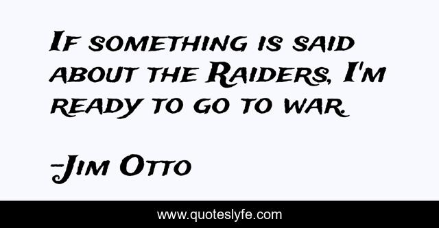 This page presents the quote "If something is said about the Raiders, I'm ready to go to war.". Author of this quote is Jim Otto. This quote is about ready, said, something,.