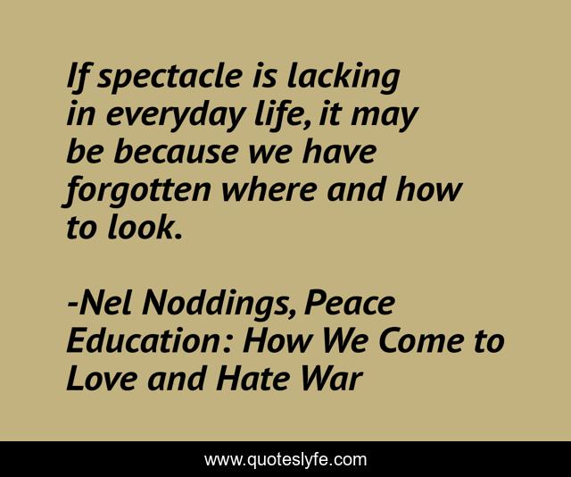 "Nel Noddings, Peace Education: How We Come to Love and Hate War Quotes." Quoteslyfe.com, 2025. Fri. 05 Dec. 2025. <https://www.quoteslyfe.com/quote/If-spectacle-is-lacking-in-everyday-life-72801>.