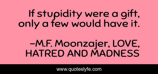 "M.F. Moonzajer, LOVE, HATRED AND MADNESS Quotes." Quoteslyfe.com, 2025. Tue. 09 Dec. 2025. <https://www.quoteslyfe.com/quote/If-stupidity-were-a-gift-only-a-190137>.